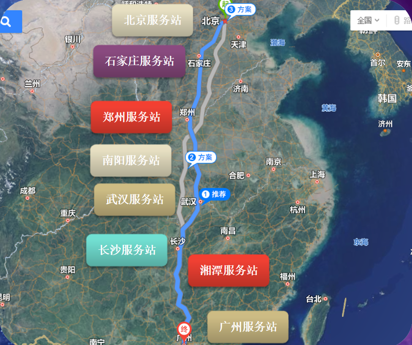 ÒÔ¹ãÖݵ½±±¾©Îª°¸Àý£º Ô˾ࣺȫ³Ì2130¹«À Õ¾µãÊýÄ¿£º8¸ö Õ¾Ãû£º¹ãÖÝ/ÏæÌ¶/³¤É³/Î人/ÄÏÑô/Ö£ÖÝ/ʯ¼Òׯ/±±¾© ·øÉä°ë¾¶£º140¹«Àï